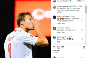 霍伊倫社媒曬出比賽照片,慶祝球隊(duì)取勝,配文:“我們遠(yuǎn)征客場,享受比賽,轟入6球,拿下勝利并領(lǐng)跑小組!太美妙了?!?/p>