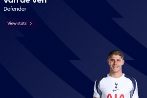 此役范德文為熱刺踢滿(mǎn)全場(chǎng),這位中衛(wèi)當(dāng)選本場(chǎng)比賽最佳球員。