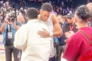 模仿布克走紅的網(wǎng)紅(CY布克??)在社媒上曬出與布克擁抱合影的瞬間,并寫(xiě)道:“我真的太幸福了、謝謝@NBA幫我圓夢(mèng)。”