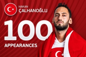 恰爾汗奧盧自2013年開始為土耳其效力,在這100場(chǎng)比賽中貢獻(xiàn)21球18助攻。